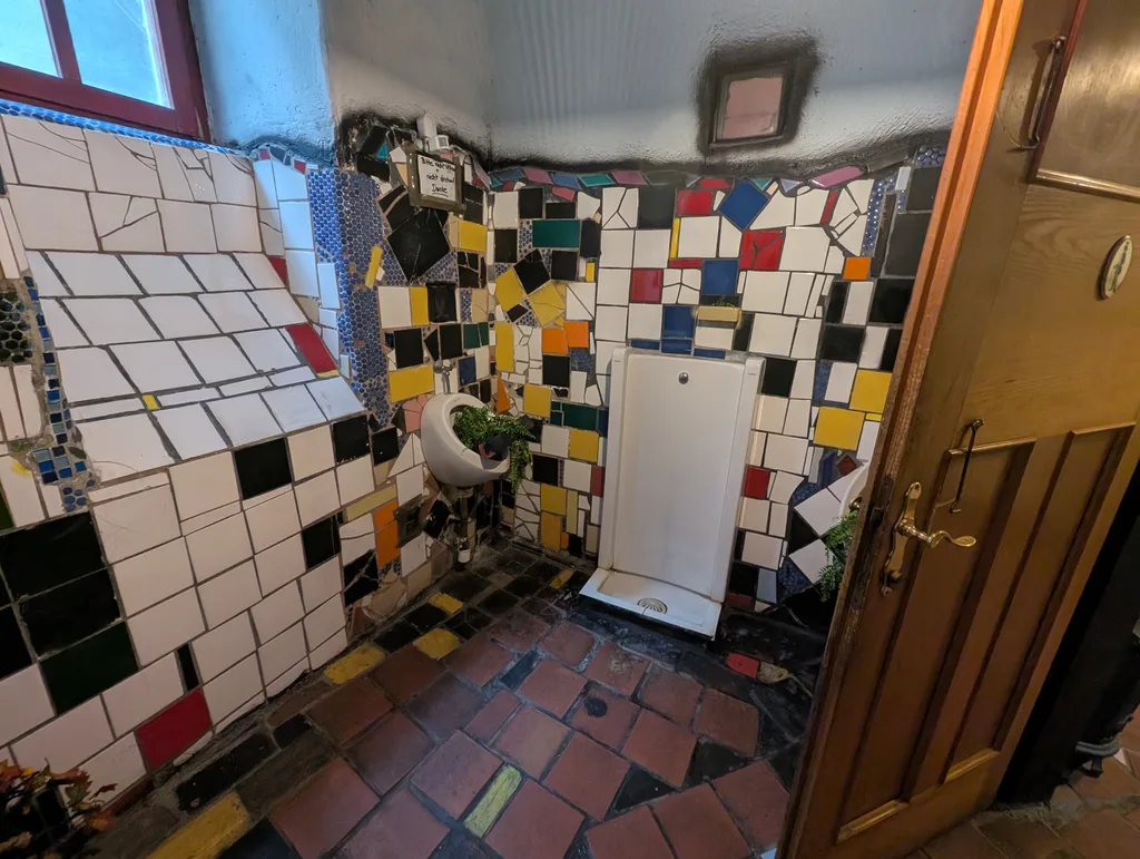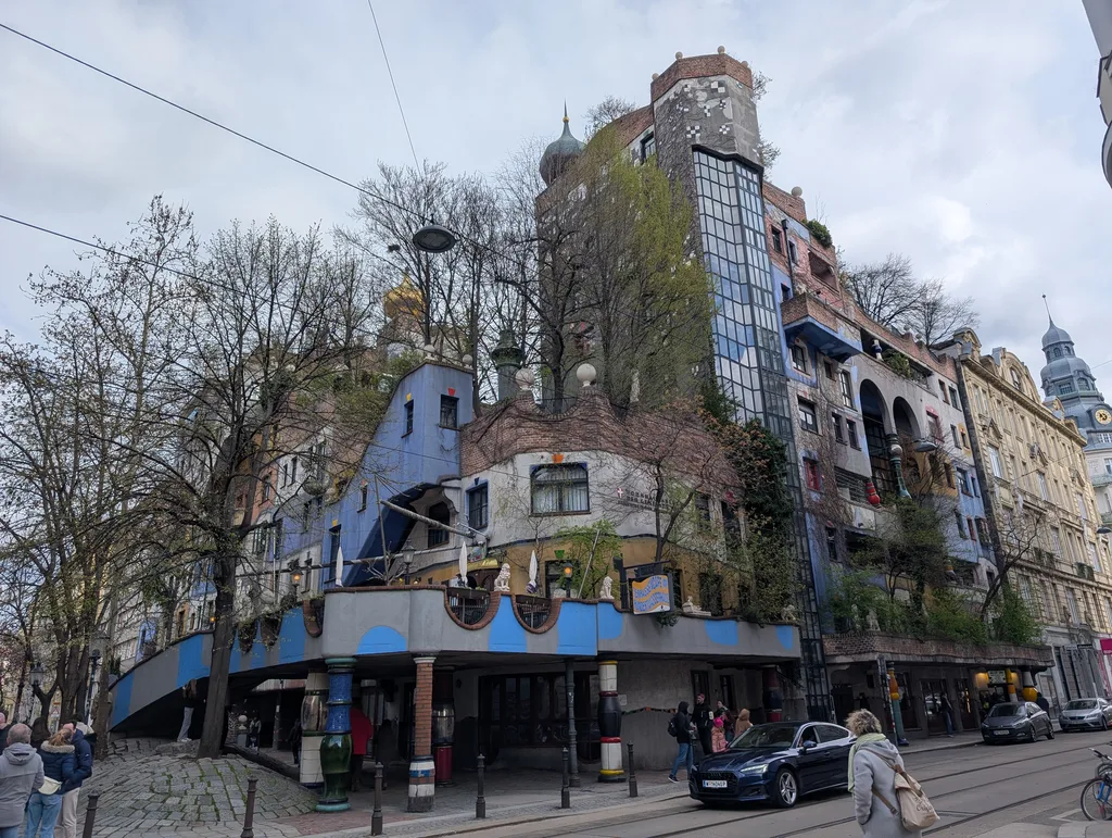Знаменитый дом великого венского архитектора Фредерика Хундервассера. Вообще-то его фамилия была Стовассер (Stowasser). Но в середине карьеры он узнал, что Sto по-русски означает число 100. А обратно на немецком соответственно Hundert. И поменял себе фамилию. Не шутка. Русским он не был и языка не знал, был немцем и наполовину евреем.