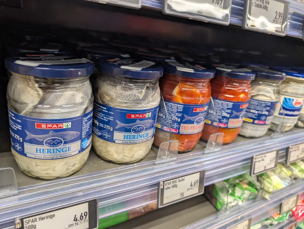 Моя любимая селедка бисмарк херинг — не соленая, а маринованная. Как жаль, что в самолет такую банку не пустят.