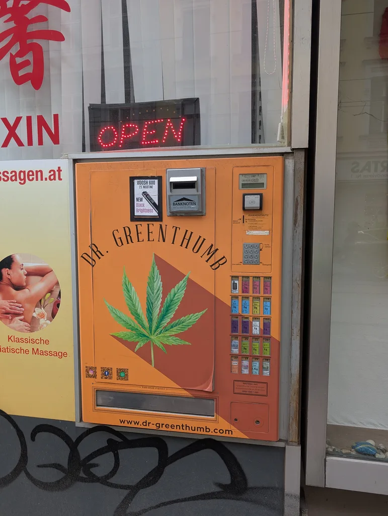Гримасы капитализма. Уличный автомат по продаже курительного табака. Курить в Австрии разрешено.