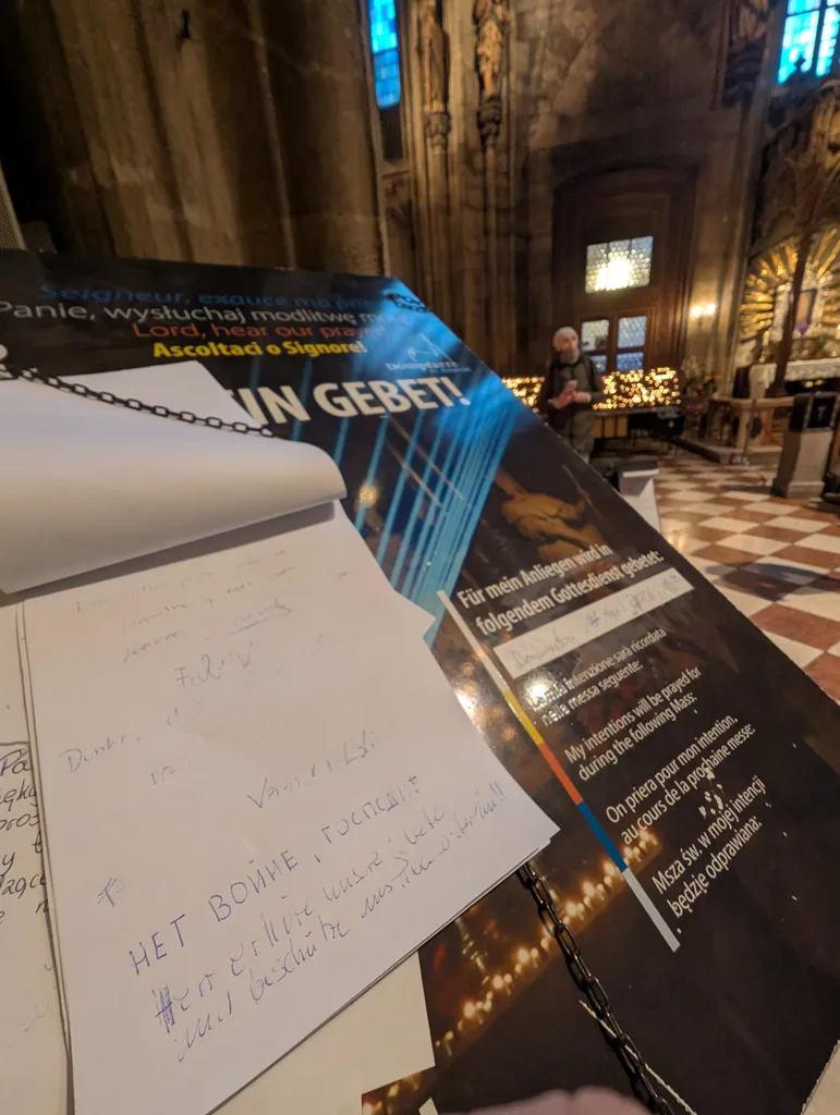 Ну а в соборе в книге люди пишут молитвы Богу. Услышит ли?